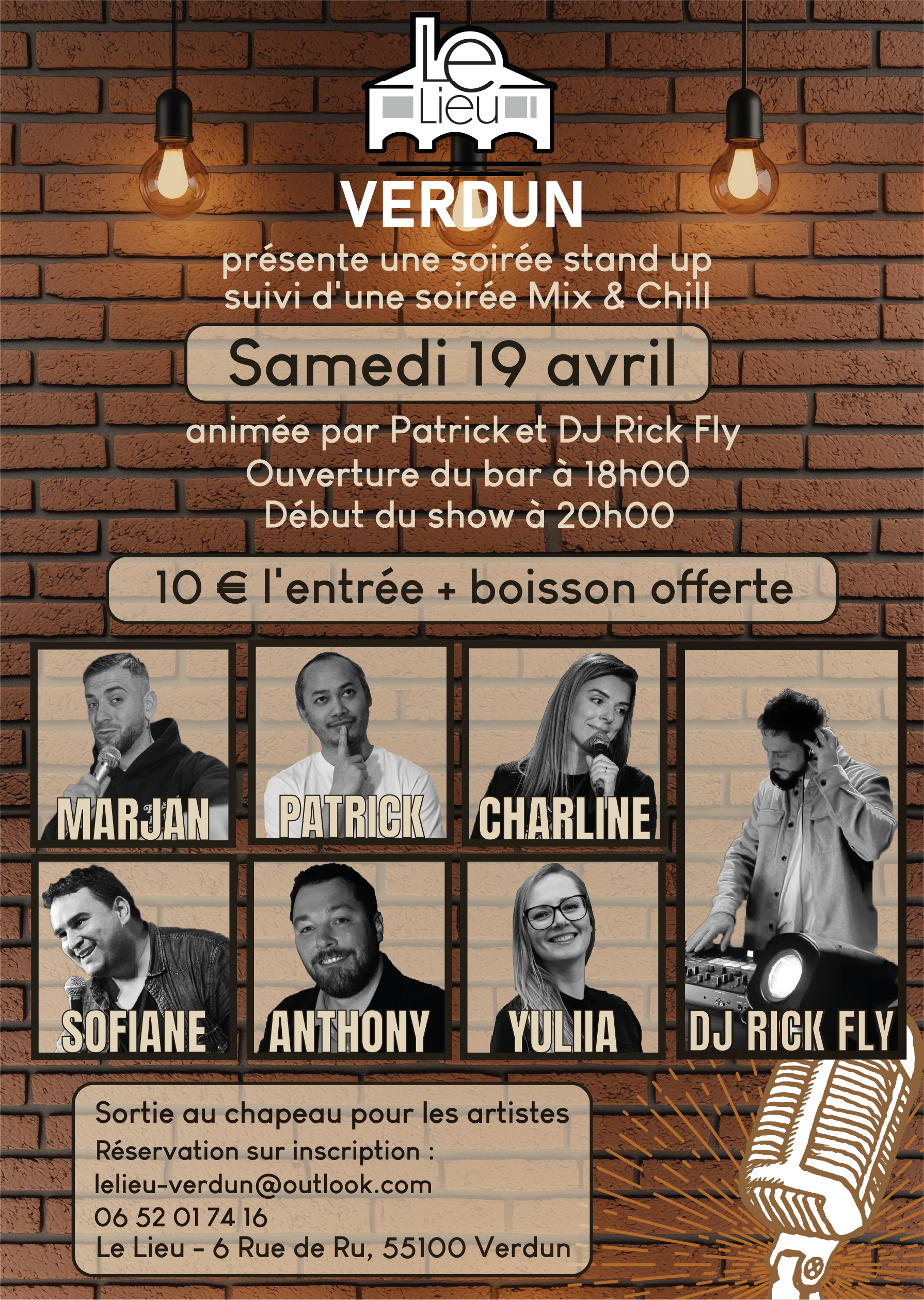 Affiche réalisée dans le cadre d’un projet graphique pour un événement de Stand Up et Mix & Chill en date du 18 octobre 2025