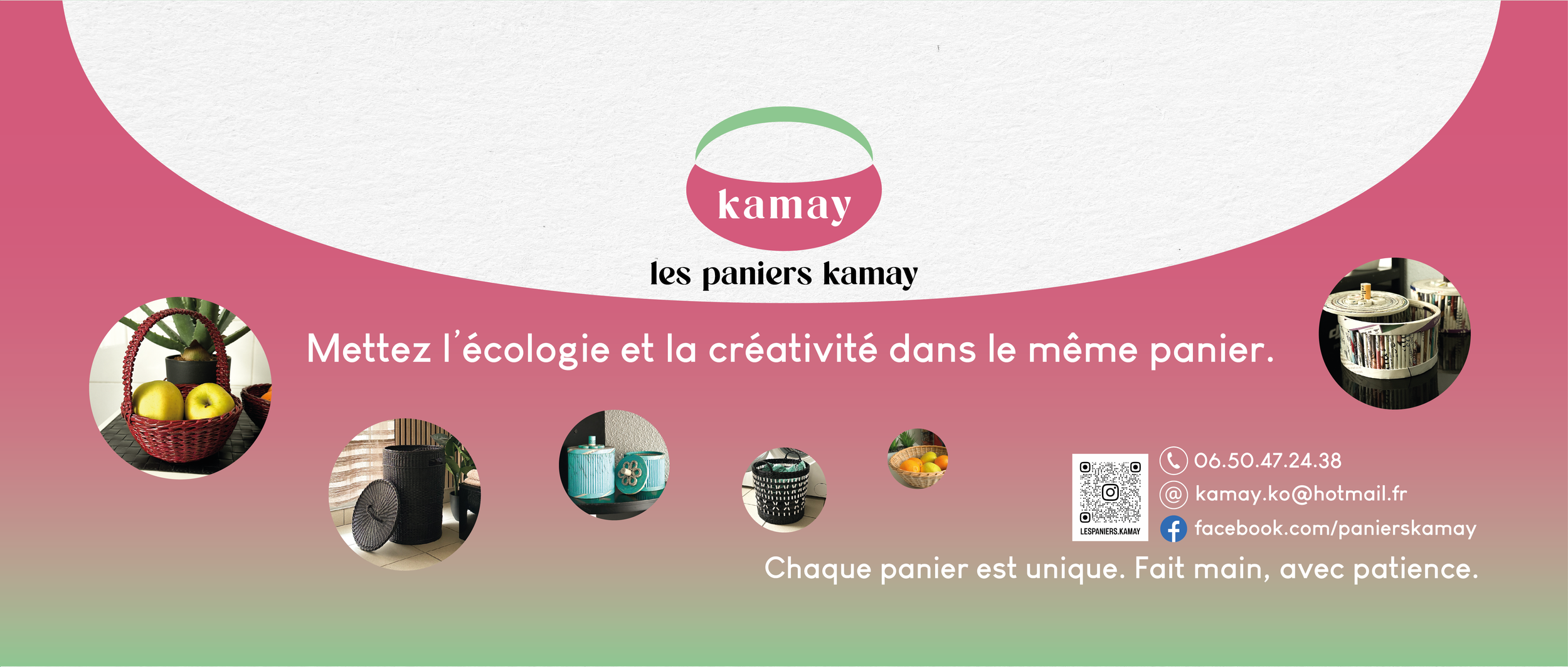 Pensés pour les marchés de créateurs, ces supports visuels ont une double mission : capter l’attention de loin grâce à la bâche, puis laisser une empreinte douce avec les flyers A5. Même si les visiteurs ne repartent pas avec un panier Kamay, ils peuvent emporter un petit souvenir de l’univers : une graine de curiosité à faire germer plus tard.